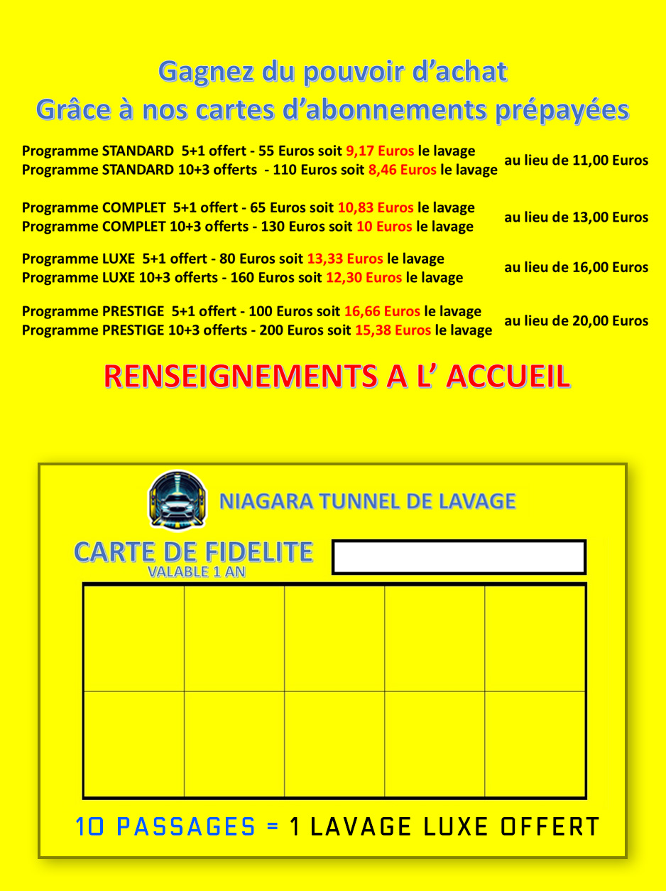VENEZ LES ESSAYER CHEZ NIAGARA TUNNEL DE LAVAGE !